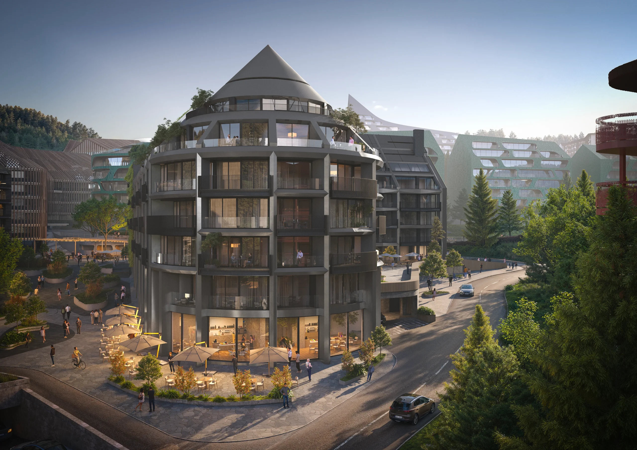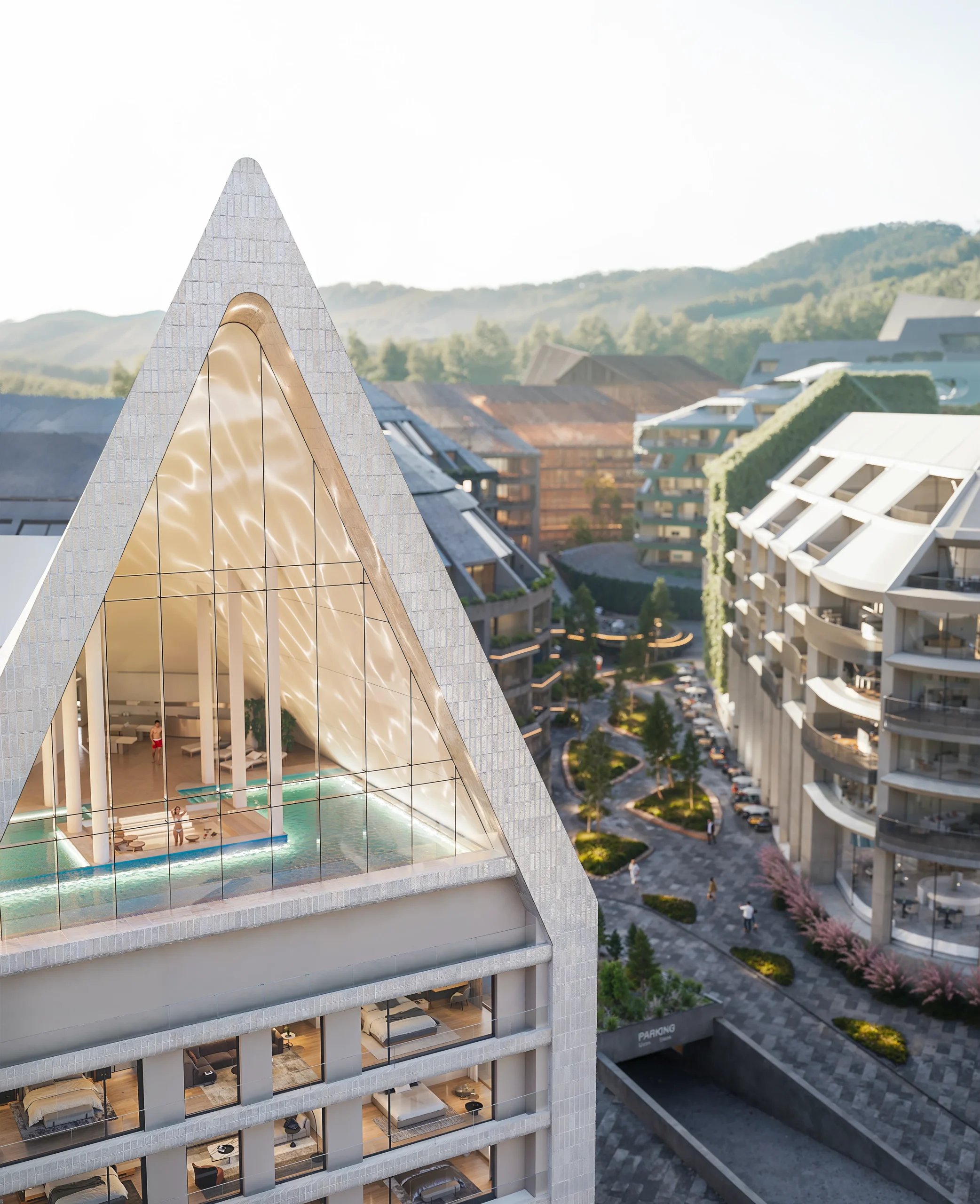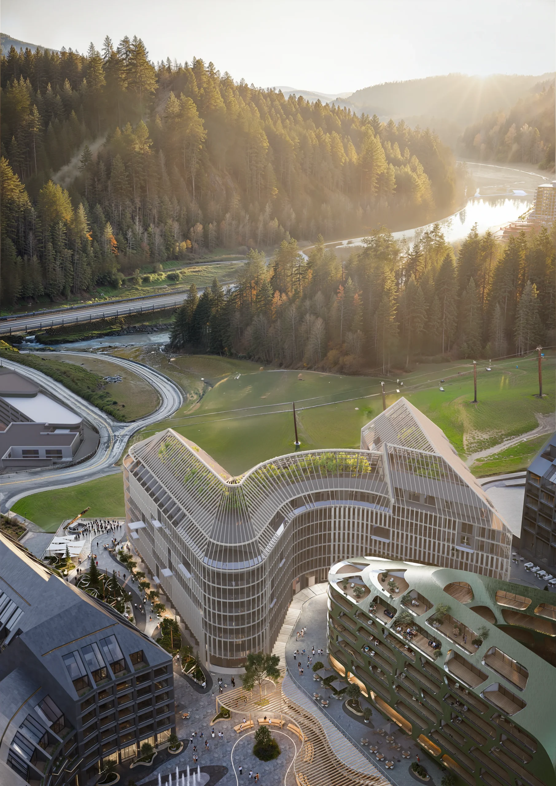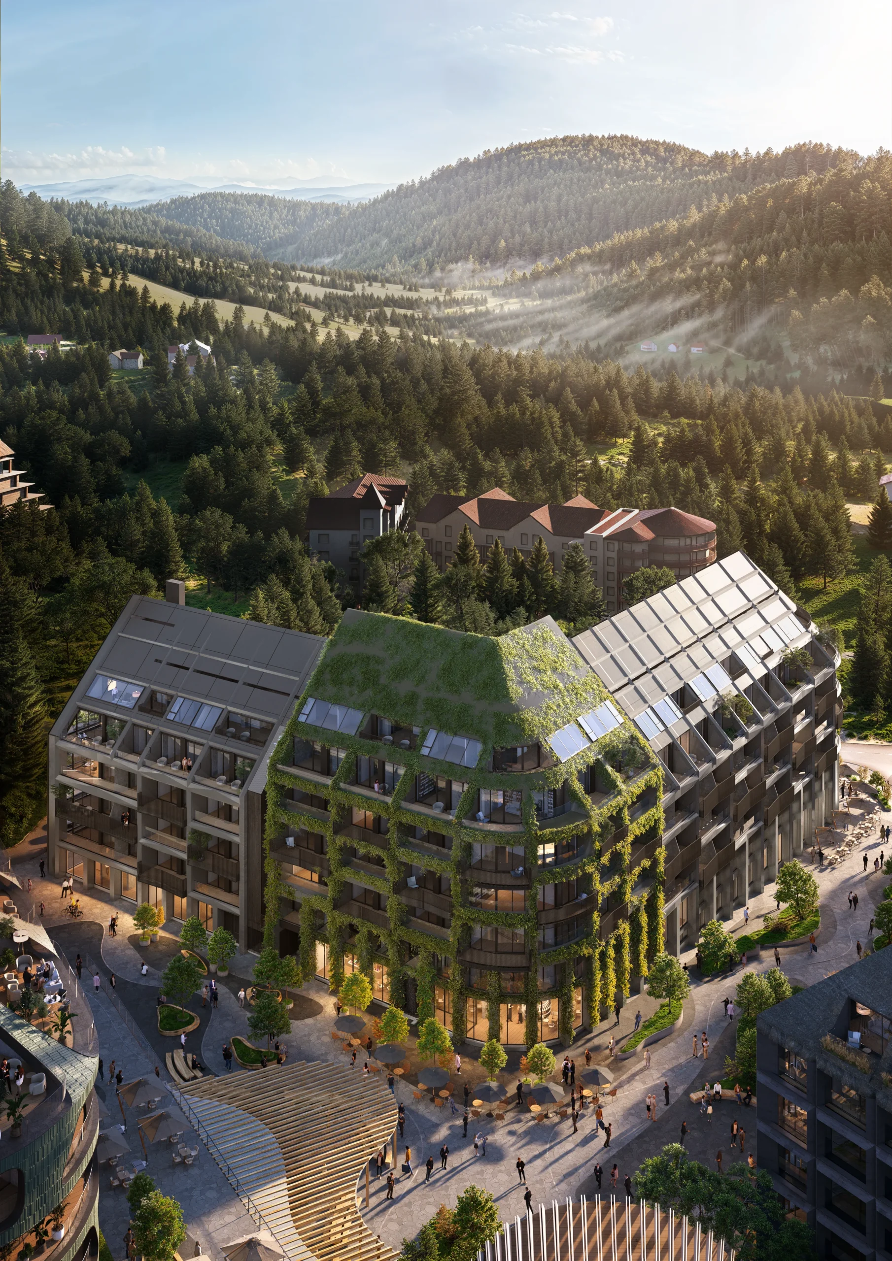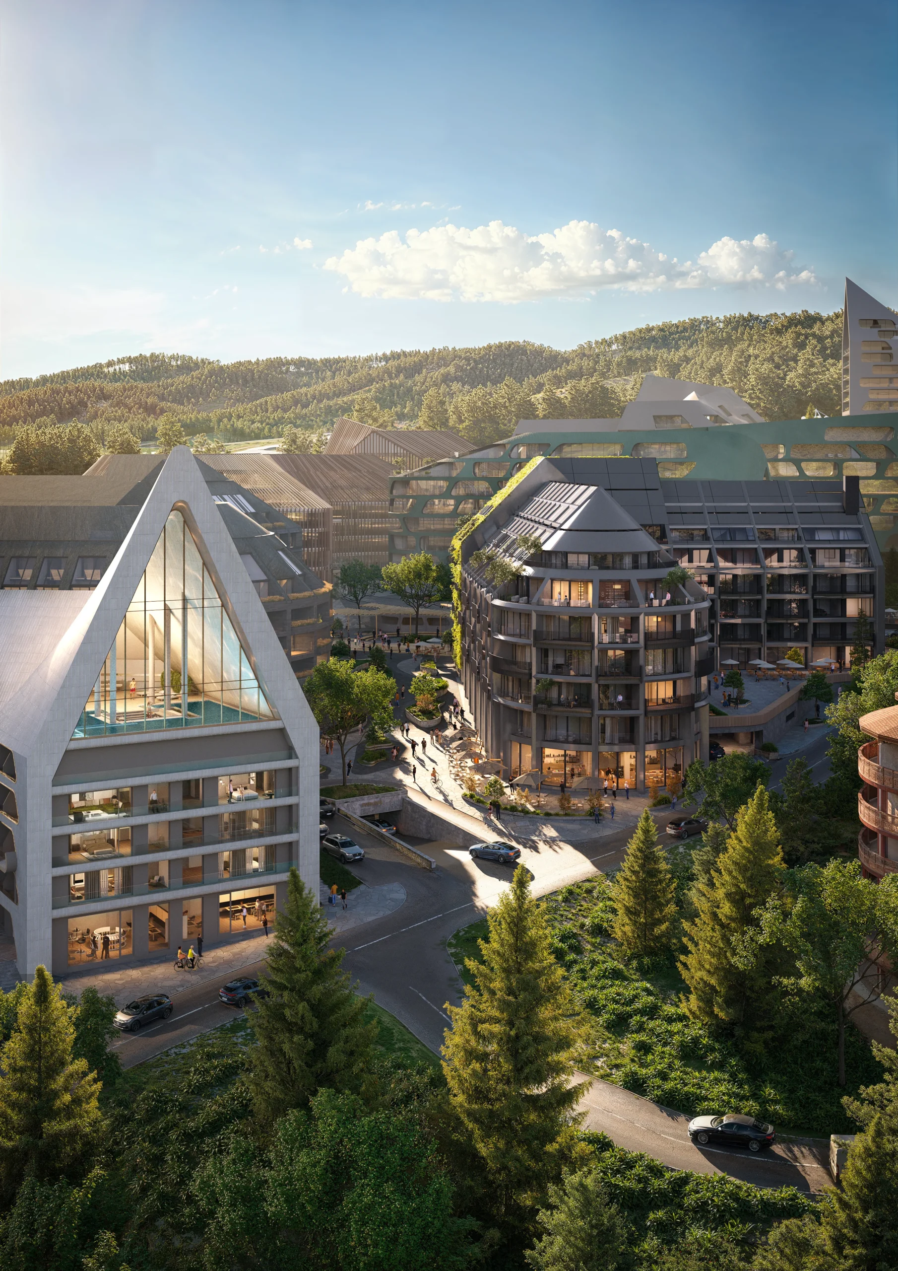 «Escape City» is 8 elite hotel complexes with their own premium recreational infrastructure, combined into a single space of the mountain city of the future, with the incredible futuristic interactive adventure, which is embodied throughout the territory of Escape City. It is this concept, its scale and exclusivity, that will ensure tourist attraction of the entire complex, attracting millions of tourists.