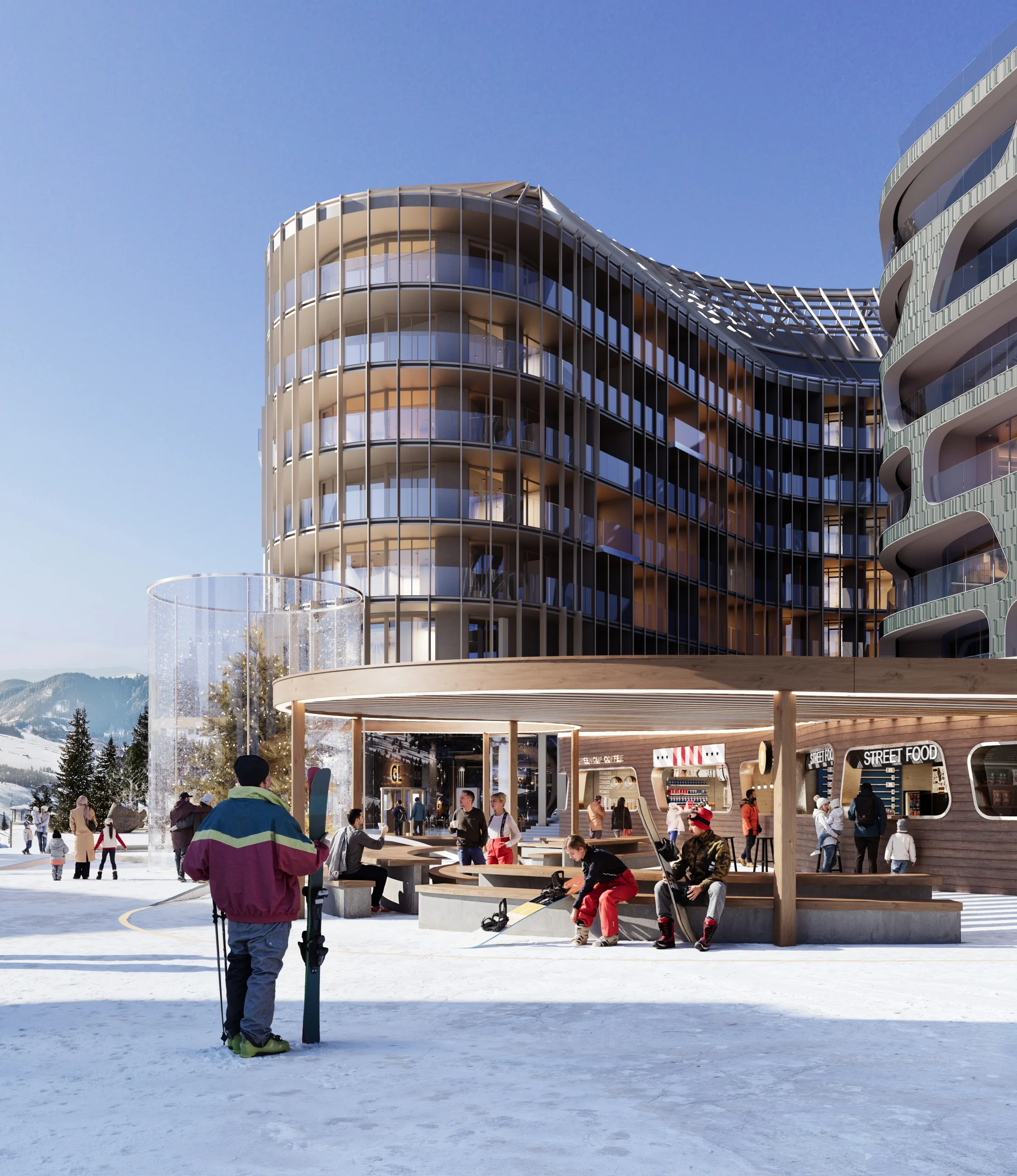 We would like to get to a place where we will go deep into a completely different life, which combines peace, safety and recovery and at the same time the dynamics of an ultra-modern resort of Ukraine.In the place where the best service and infrastructure that create all conditions for rest and recovery are offered in line with possibility of uniting with nature, colorfulness and authentic surroundings of Ukrainian culture. And panoramic views from the windows of your apartments impress with picturesqueness of the Carpathian Mountains and at the same time beckon you to noisy squares, where special attention is paid to family leisure with exciting interactive story.